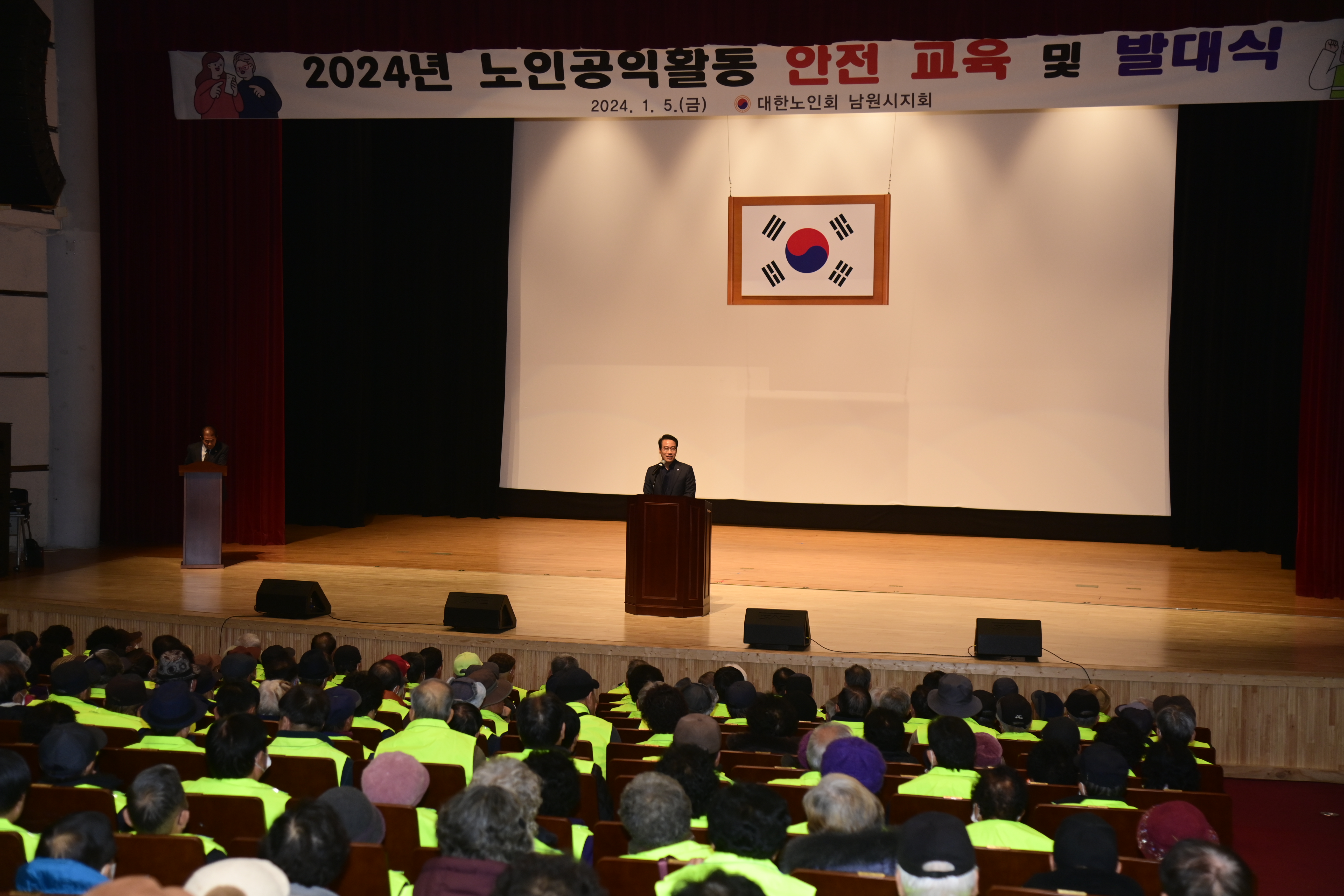 [남원=뉴전북] 남원시는 대한노인회 남원시지회(회장 곽철곤)가 수행하는 노인일자리사업 참여자를 대상으로 5일 남원 춘향문화예술회관 대공연장에서 2024년 노인일자리 및 사회활동지원사업 발대식을 개최했다.