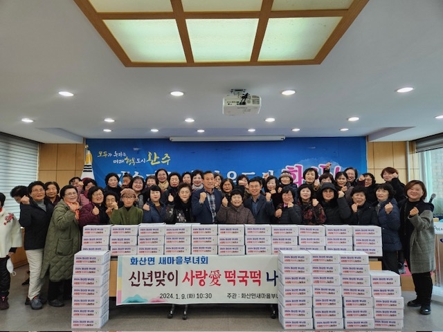 이날 나눔 행사에 준비된 떡국떡은 화산농협에서 후원했으며, 새마을부녀회 회원들이 43개 마을 경로당에 전달했다.