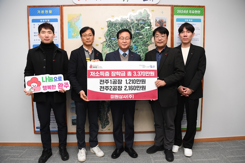18일 완주군에 따르면 미원상사 전주공장은 지난 2019년부터 해마다 빠지지 않고 직원들이 자발적으로 성금 모금을 실시해 완주군 관내 어려운 학생들과 아이들에게 후원을 이어가고 있다.