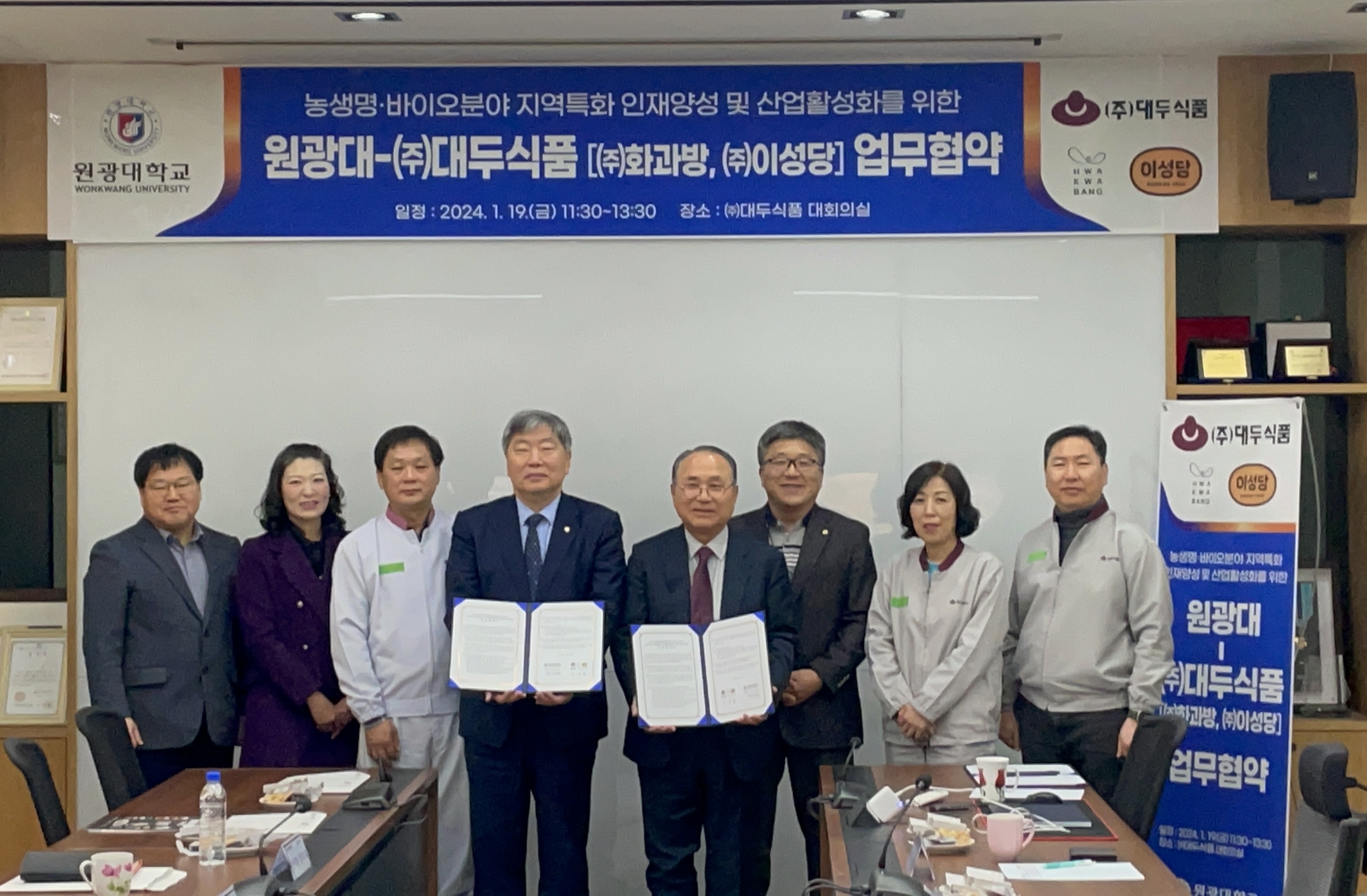 ㈜대두식품의 조성용 대표이사는 이날 협약 체결을 통해 산업현장에 필요한 인력 확보와 우리 지역의 인재들이 자신의 꿈을 펼칠 기회를 제공하기 위해 대두식품의 기술연구소와 농생명·바이오사업단이 협력해 기초연구를 진행할 예정이라고 밝혔다.