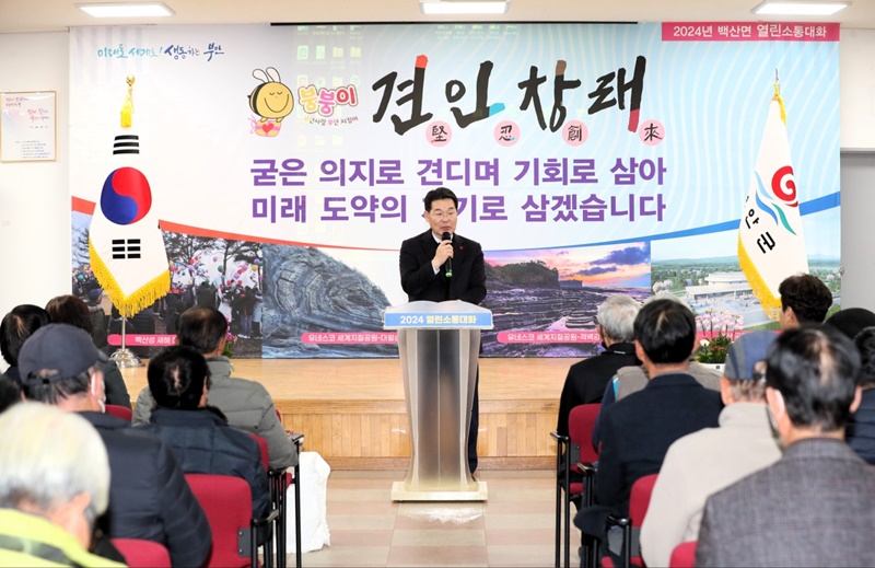 권익현 부안군수는 “견인창래(堅忍創來), 굳은 의지로 새로운 부안의 미래를 열다” 슬로건으로 2024년 군정비전에 대해 공유하는 자리를 가진 후 군정에 대한 의견을 진솔하고 자유롭게 나누는 ‘열린소통대화’ 시간을 가져 큰 호응을 얻었다.