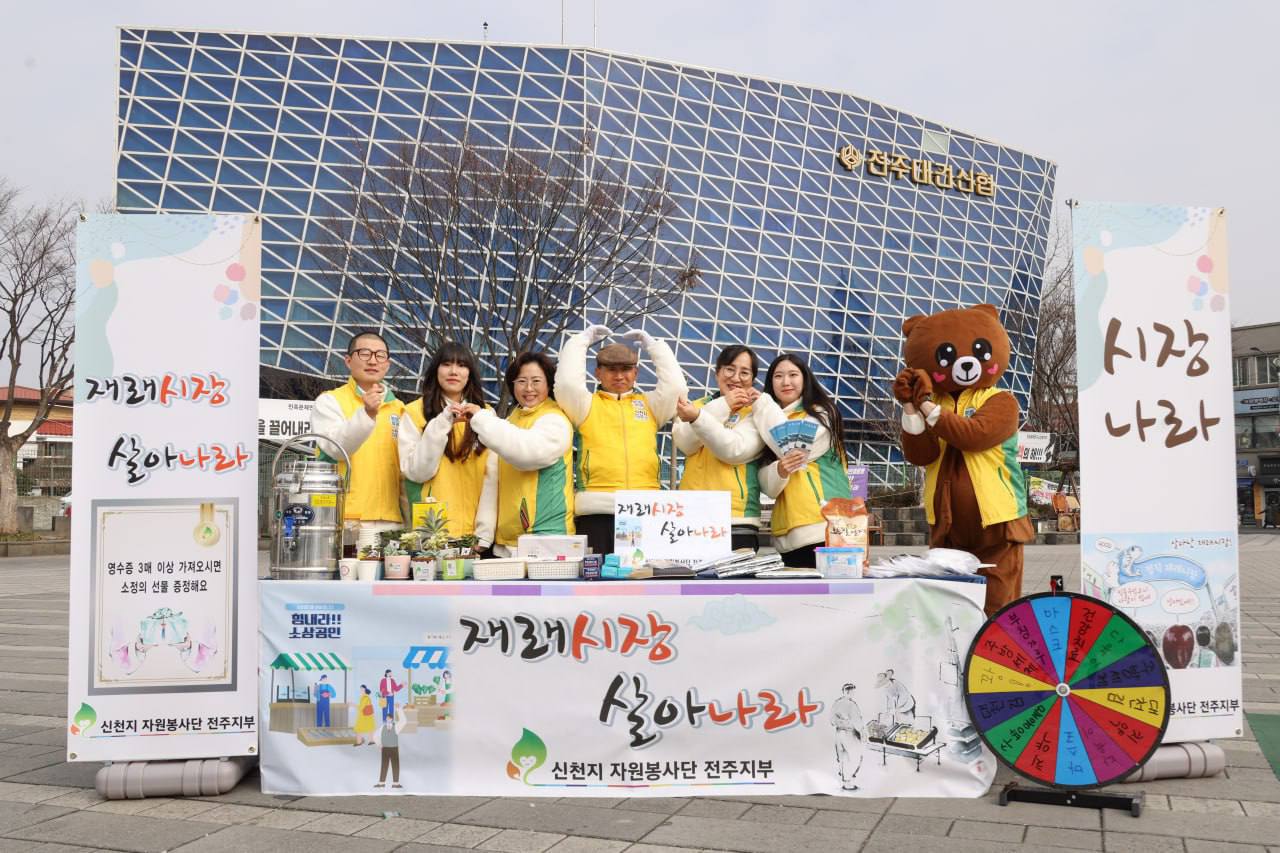 [사회=뉴전북] 이번 풍요로운 명절을 맞이하여. 풍남문 상인회와 신천지자원봉사단 전주지부 회원들의 적극적인 협업을 통한 명절 대비 지역경제 살리기 위해 노력, 그 따뜻한 마음을 모아서 인원 400~500여 명이 대대적인 홍보와 장보기에 나섰다.