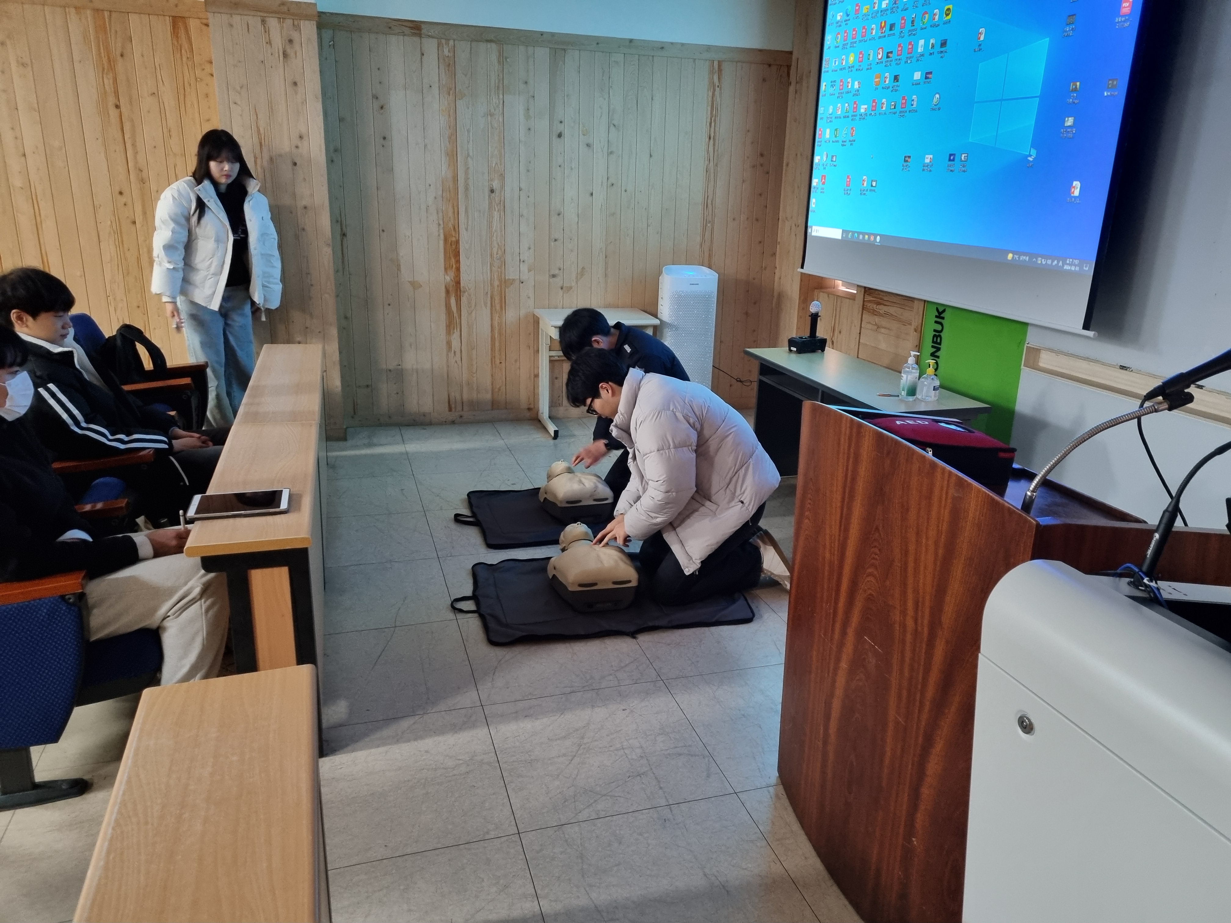 소방안전교육 내용은 심폐소생술, 자동심장충격기 사용법, 소화기 사용법, 화재예방과 대피, 초기대처 등 화재상황 대처요령, 자연재난, 사회재난에 대처하는 안전수칙 등 이다.
