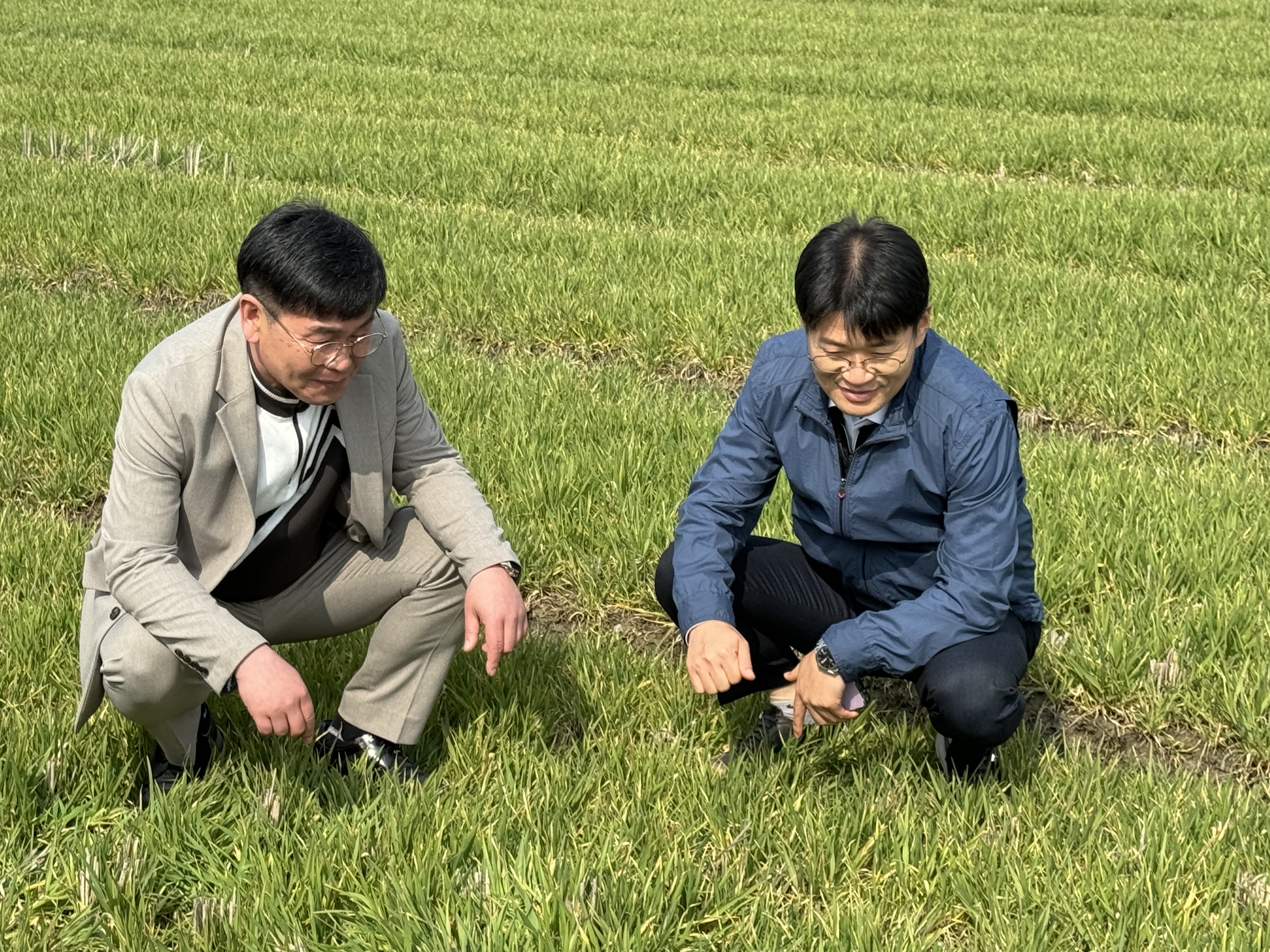[김제=뉴전북] 농협김제시지부(지부장 조원석)에서 5일 진봉면 일대 보리밭의 작황상태를 살피고 비료 수급상황 점검을 실시했다.