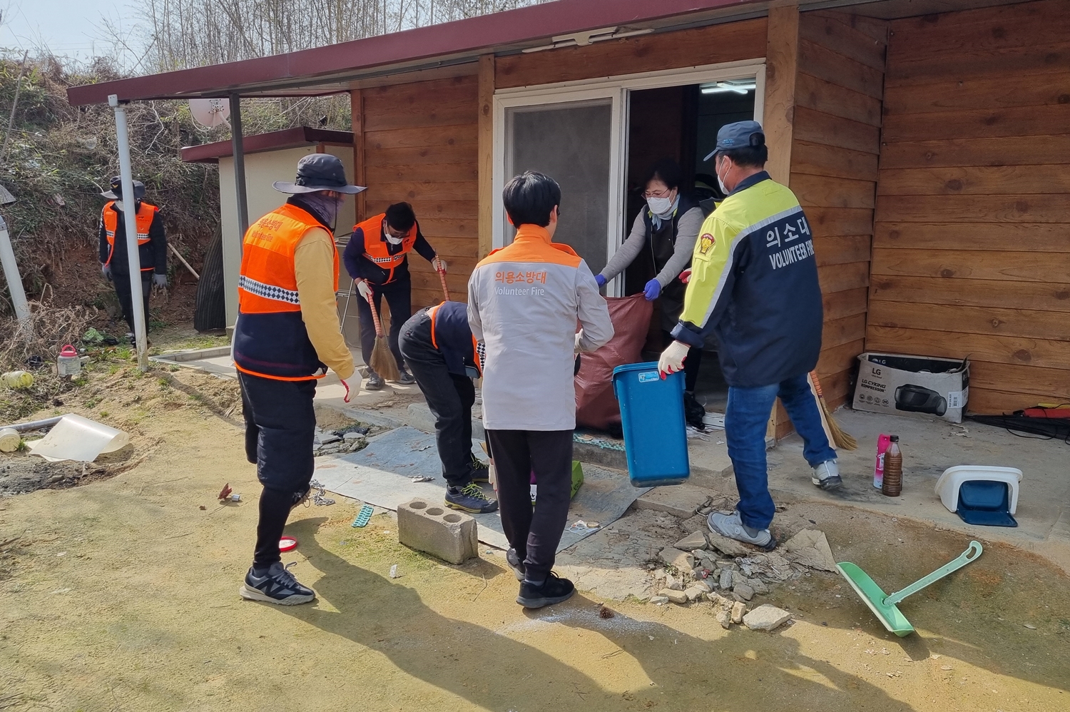 이날 봉사활동은 감곡면 남녀의용소방대 20명이 참여해 집안 정리와 대청소를 하고 휴지 등 생활용품을 전달했다.