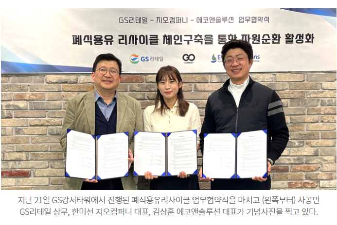 GS리테일, 폐식용유 리사이클 체인 구축한다…ESG 경영 강화
