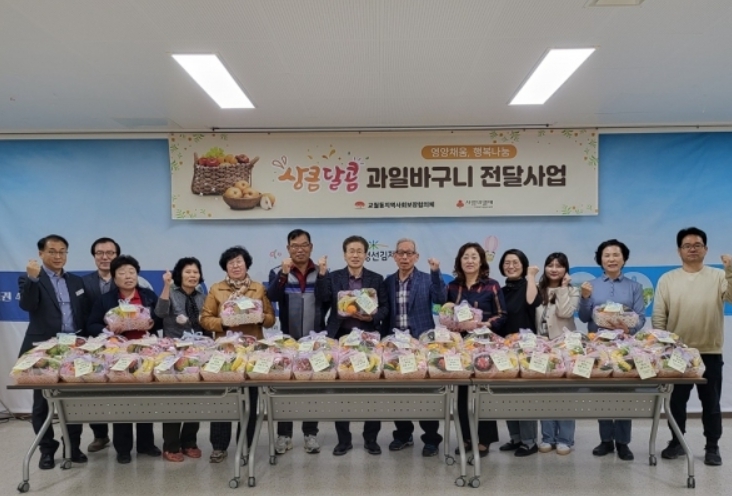 [김제=뉴전북] 김제시 교월동 행정복지센터는 지역사회보장협의체(민간위원장 조종옥)가 지난 28일 관내 저소득 독거 어르신 및 취약가구 50세대에 신선한 제철 과일로 만든 과일바구니를 전달했다고 밝혔다.