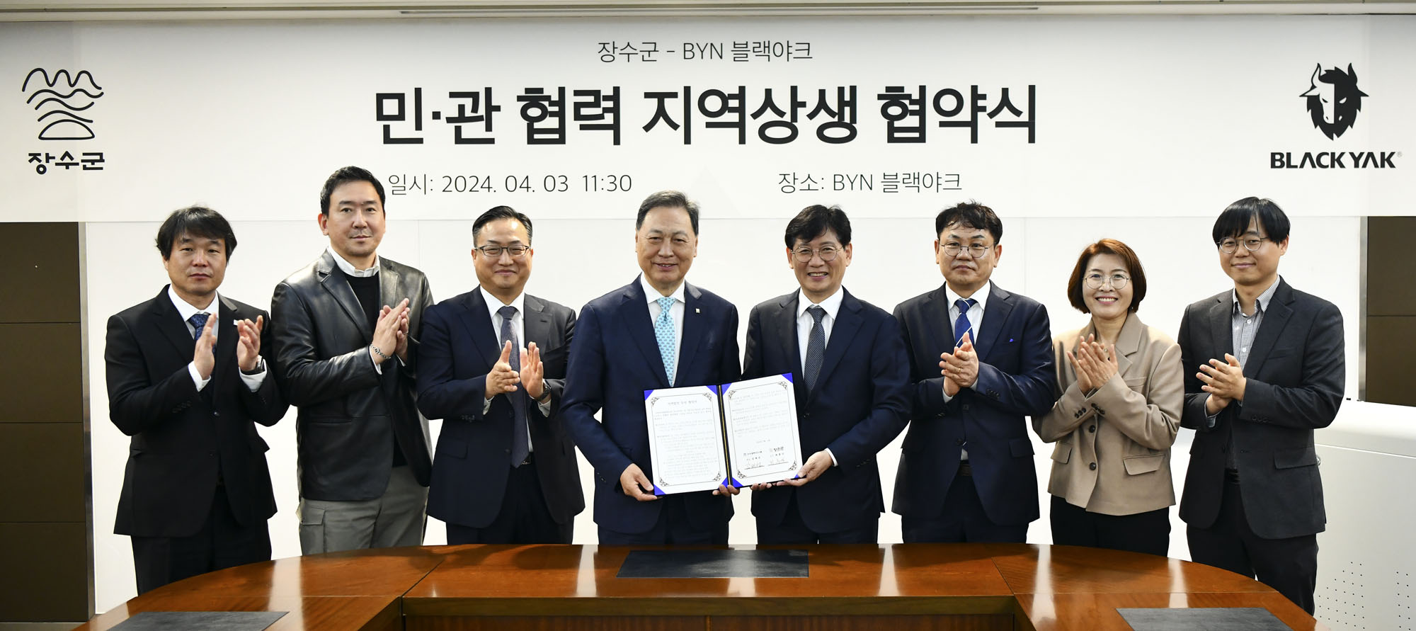 [장수=뉴전북]장수군은 3일 오전 블랙야크 양재사옥에서 BYN블랙야크그룹과 장수군 산림레포츠 기반 구축 및 활성화를 위한 민관협력 지역상생협약을 체결했다고 밝혔다.