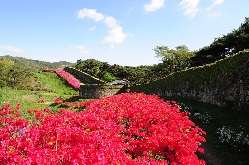 읍성 내부에는 봄비를 맞고 연초록 물이 오른 나뭇잎들이 싱그럽고, 성곽 밖으로는 진홍빛 철쭉이 장관을 이루며 봄을 즐기기 위해 고창을 찾는 관광객에게 시각적 즐거움을 선사하고 있다.