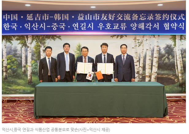 [경제=뉴전북] 익산시가 중국 최대 중국동포 특화식품 산업단지를 조성하고 있는 연길(옌지)시와 우호협력 협약을 체결하며 글로벌 식품도시로서 위상을 다졌다.