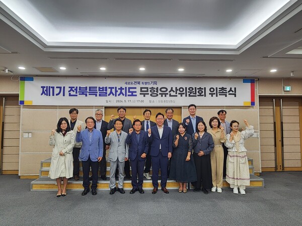 [도정=뉴전북] 전북특별자치도는 지난 17일 도청 종합상황실에서 24명의 무형유산 관련 전문가들이 참석한 가운데 2024년 새로 출범한 전북특별자치도 무형유산위원회위원들에게 위촉장을 수여했다.