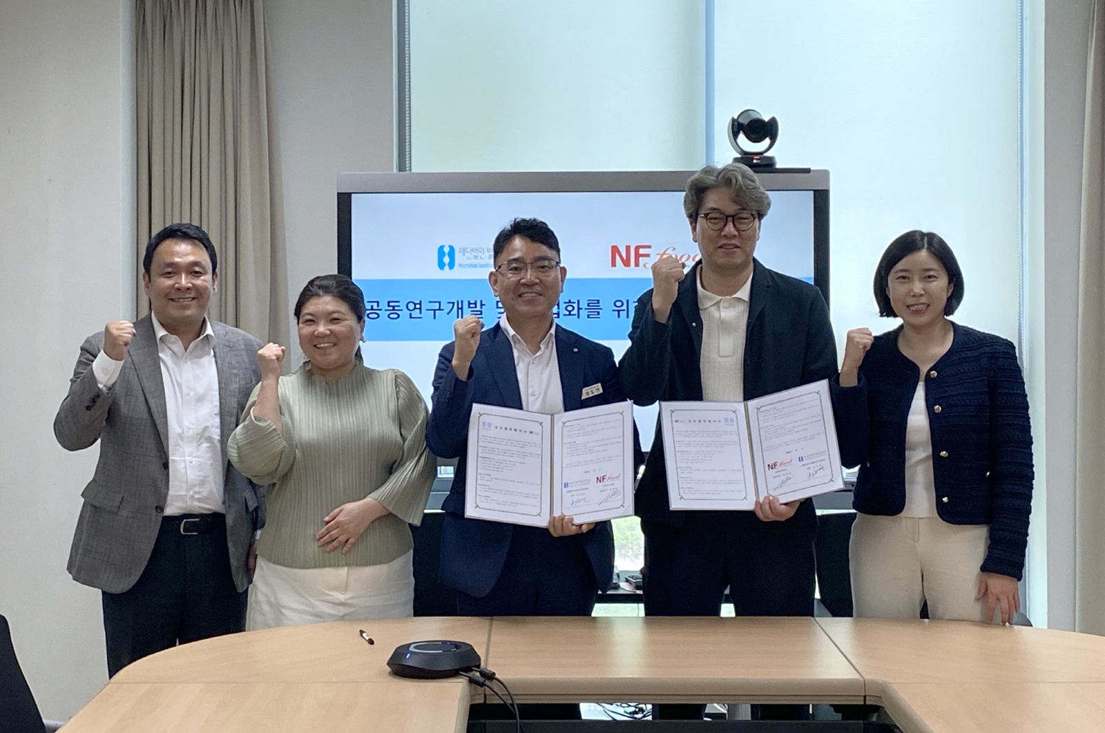 [순창=뉴전북] 전북 순창군 출연기관인 (재)발효미생물산업진흥원(원장 정도연)과 엔에프푸드(주)(대표 최항석)는 지난 21일 상호 연구협력 강화를 위한 업무협약(MOU)을 체결하고 공동연구 및 상품개발에 나선다고 밝혔다.