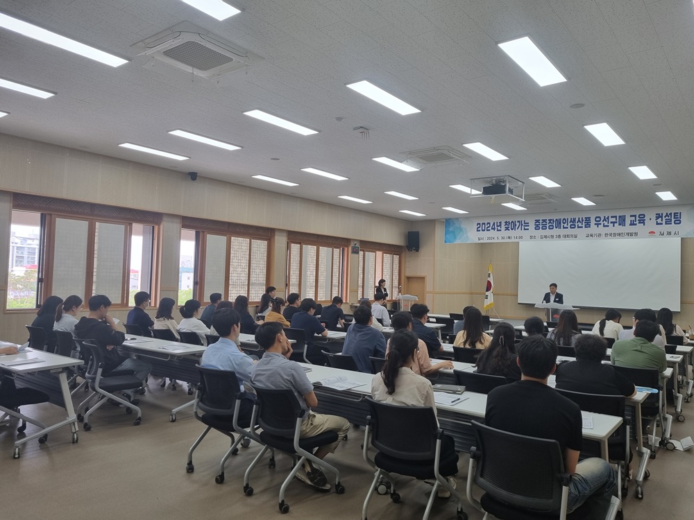 [김제=뉴전북] 김제시(시장 정성주)는 지난 30일 부서별 물품구매·회계 담당자를 대상으로 ‘중증장애인생산품 우선구매 촉진을 위한 교육 및 컨설팅’을 진행했다고 밝혔다.