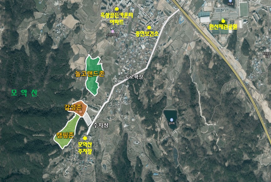 이를 위해 시는 오는 2027년까지 총 618억 원을 투입해 ▲캠핑존(3만300㎡) ▲감성존(1만6700㎡) ▲놀고랜드존(3만3400㎡) 등 3개의 핵심 공간을 조성하고 ▲진입도로 확장 ▲공영주차장 조성 ▲등산로 정비 ▲우회도로 개설 ▲무장애 나눔길 등 5개 기반시설 구축사업도 함께 추진할 계획이다.