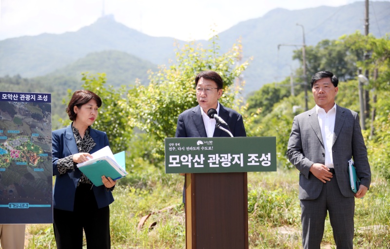 우범기 전주시장은 4일 중인동 모악산 공영주차장 일원에서 ‘모악산 관광지 조성 사업’ 관련 현장 브리핑을 열고 “전주 시민의 휴식처인 모악산을 전주를 대표하는 생태관광 랜드마크로 조성할 계획”이라며 “이를 토대로 전주는 더 경쟁력 있는 새로운 관광도시로 나아가겠다”고 밝혔다.