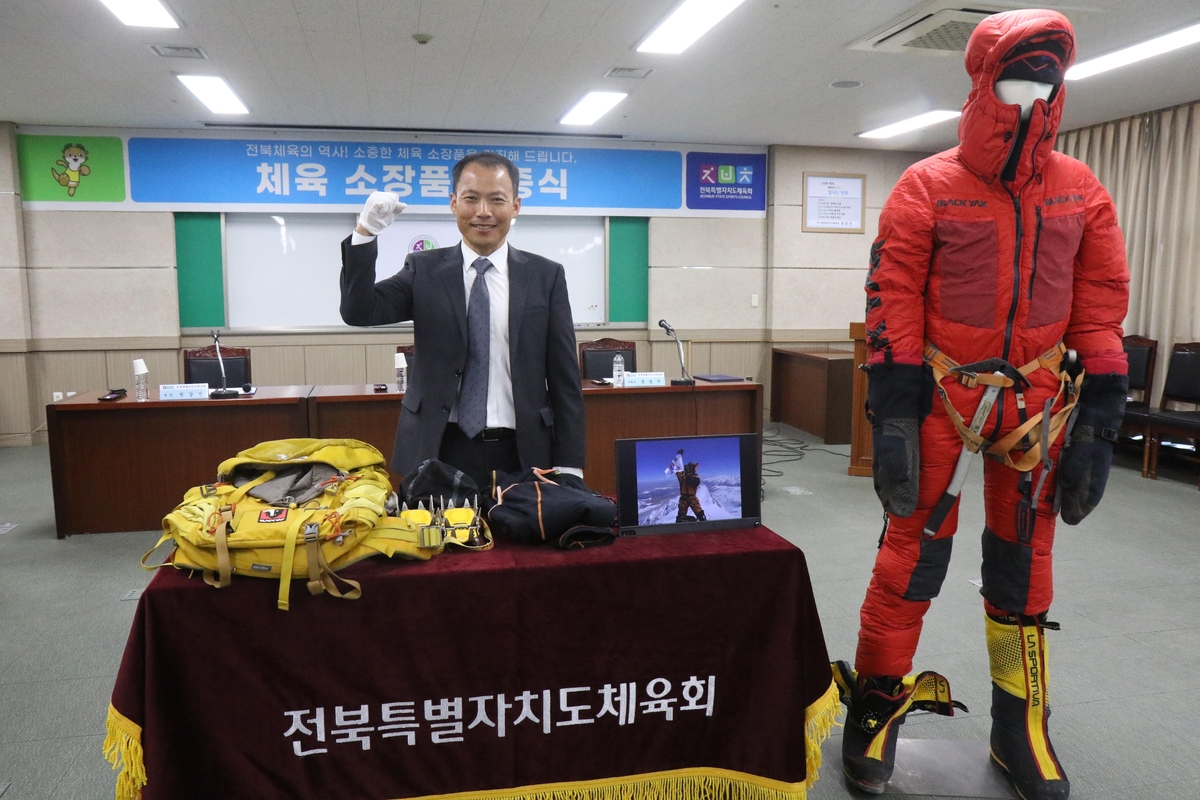 [체육=뉴전북] 전북특별자치도체육회는 히말라야 8천m급 14좌를 완등한 산악인 김미곤(52) 대장이 전북체육역사기념관 건립을 기원하며 소장품을 기증했다고 4일 밝혔다.