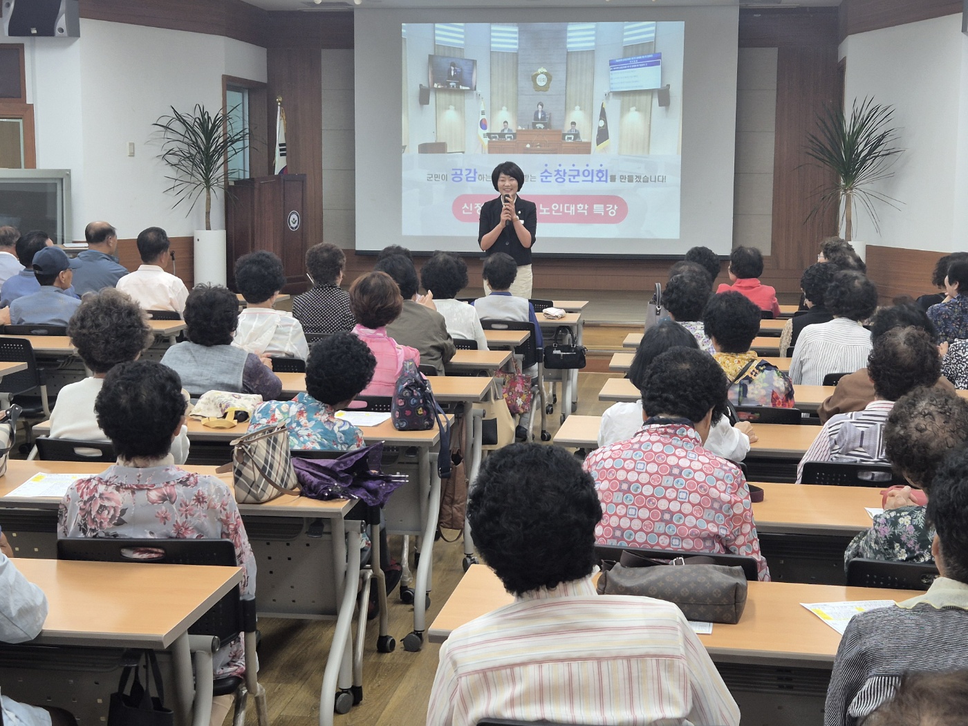 [순창=뉴전북] 전북 순창군의회 신정이 의장이 지난 20일 순창군 노인대학에서 100여 명의 학생을 대상으로 ‘군민이 공감하는 신뢰받는 순창군의회 의정활동’이라는 주제로 유쾌한 특강을 펼쳤다.