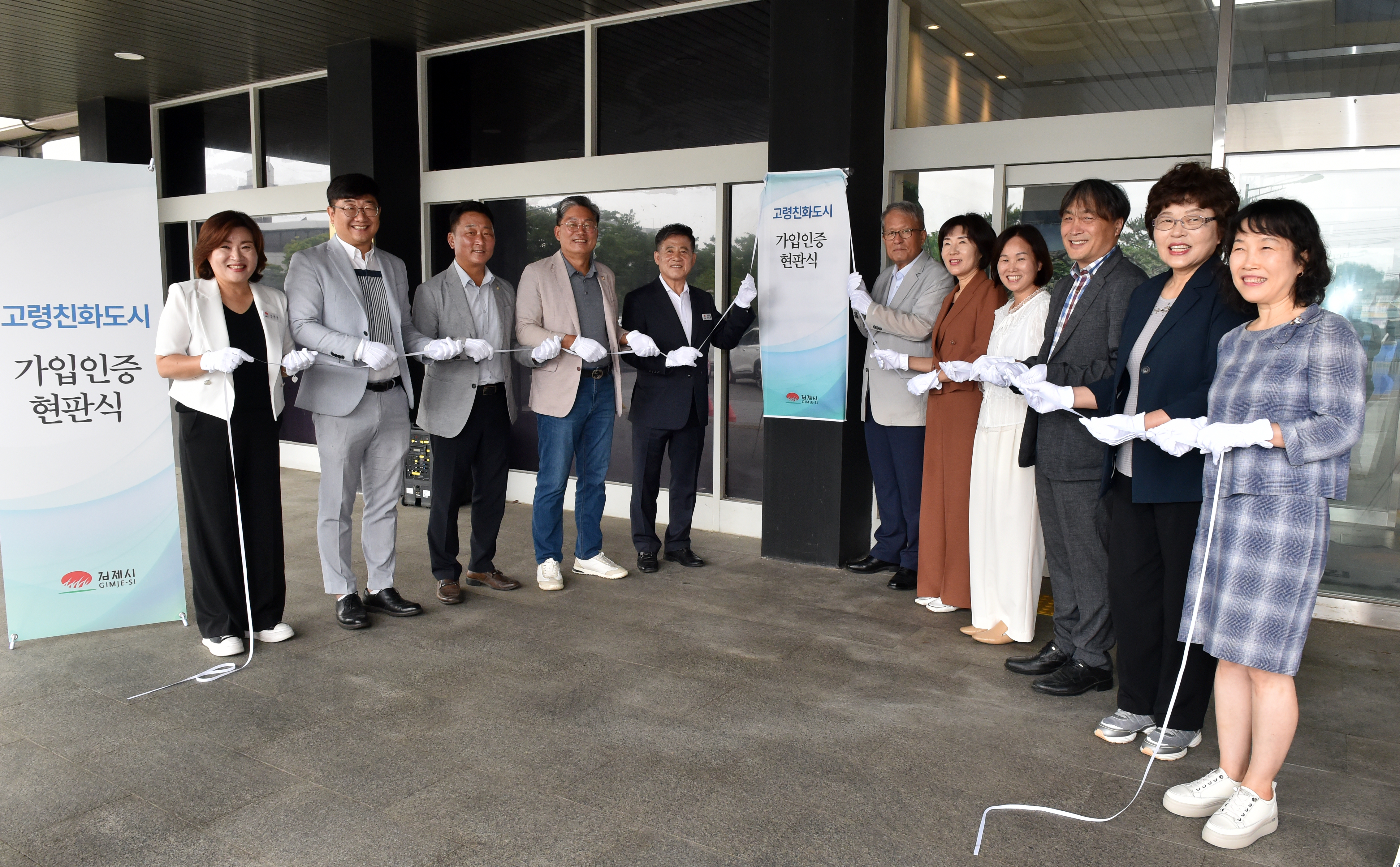 • - 김제시, WHO 고령친화도시 인증 현판식 - 정성주 김제시장, 고령친화도시 조성위원회 위원 및 어르신 섬김위원회 위원들이 참여