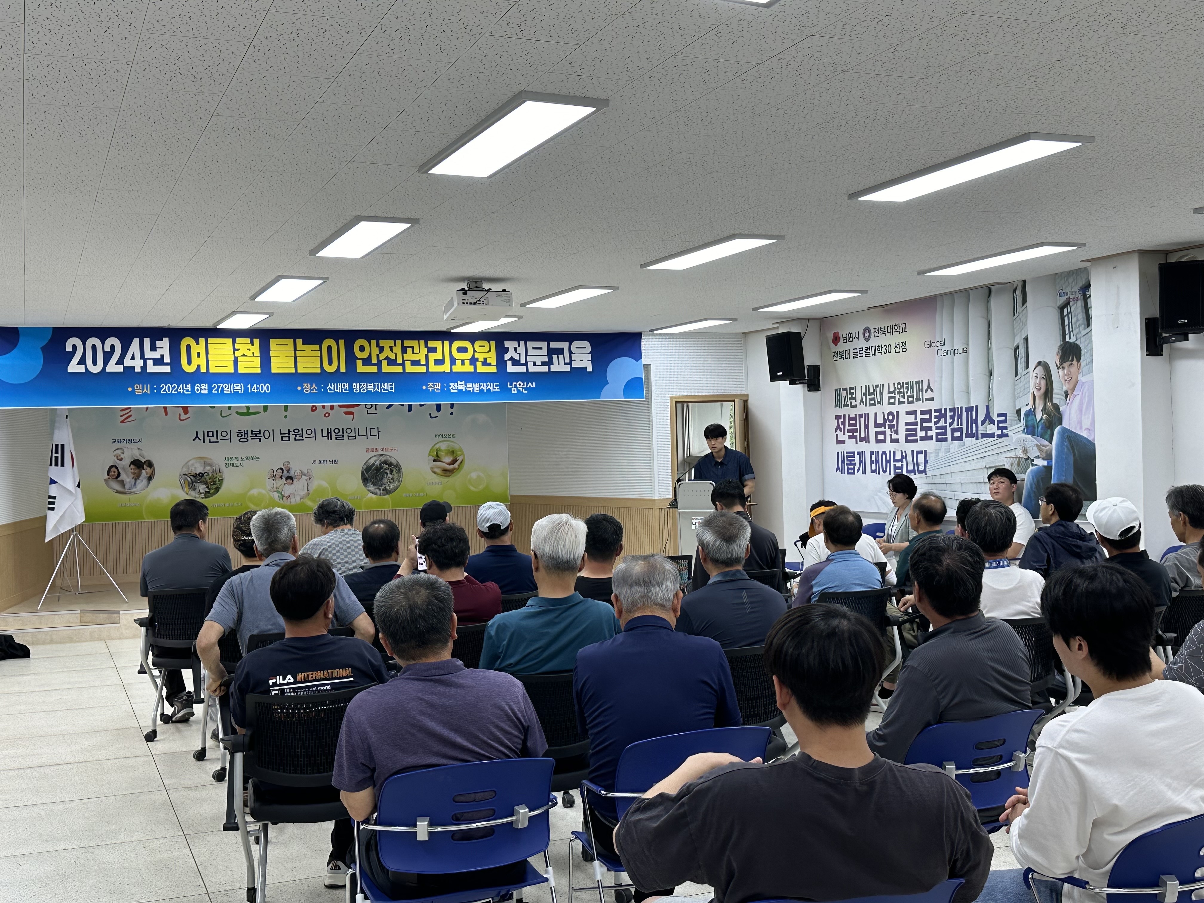 이번 교육은 전북특별자치도와 남원소방서 합동으로 안전전문 강사의 지도로 수상 구조요령, 심폐소생술 등 물놀이 중에 발생할 수 있는 안전사고 유형과 대처법을 실습형 위주로 진행하였다.
