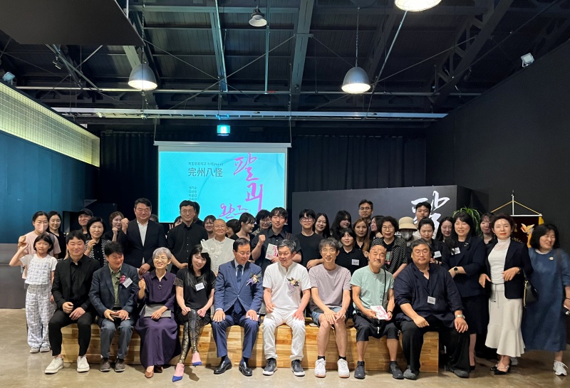 [문화=뉴전북] (재)완주문화재단 복합문화지구 누에(nu-e)에서 누에아트홀에서 지난 27일 ‘완주팔괴(完州八怪)’ 기획전 오픈식이 참가한 8명의 작가와 유희태 완주군수, 이준희 미술평론가(건국대 현대미술학과 겸임교수) 등이 참석한 가운데 열렸다.