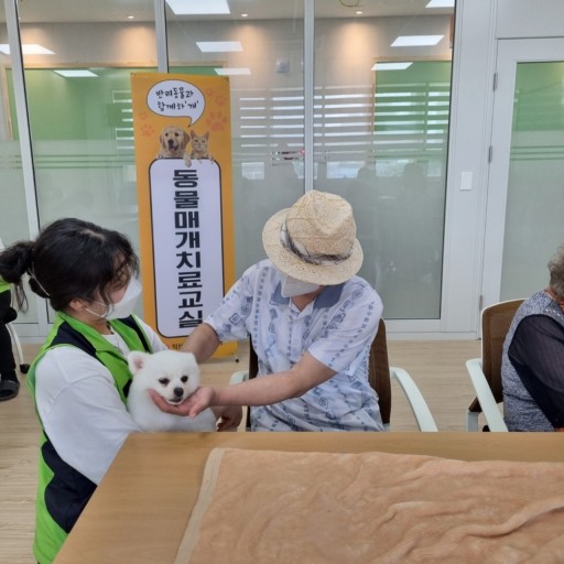 - 60세 이상 노인 대상으로 7월 3일부터 9월 4일까지 총 10회 운영 - 치료도우미견 2마리와 간식주머니·집 만들기 등 수공예 활동 진행
