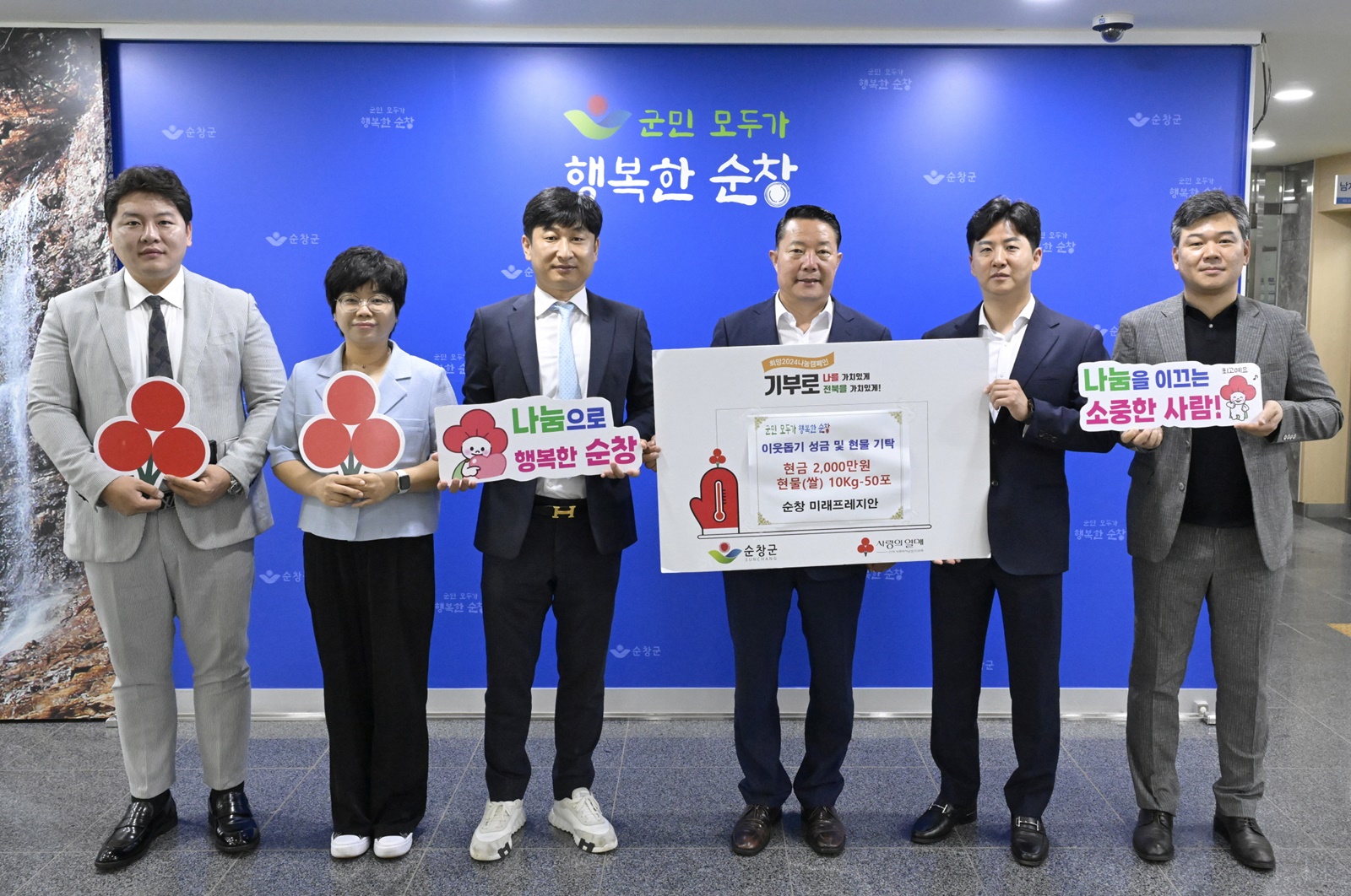 [순창=뉴전북] ㈜미래건설(미래주택건설, 대표 한지훈)이 2일 순창군을 방문해 지역 내 어려운 가정을 위해 써달라며 2,000만 원 성금 및 쌀 50포(10kg)를 기탁했다.
