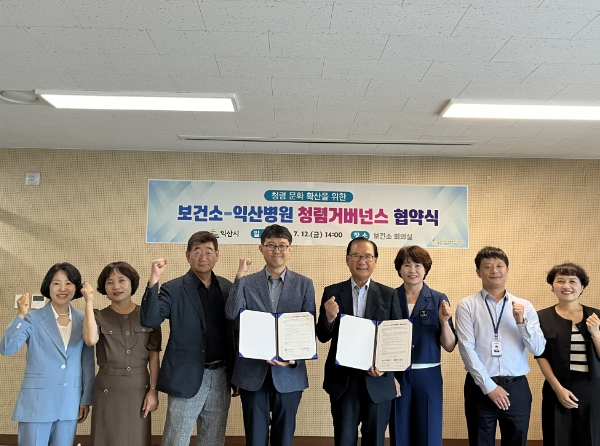 [익산=뉴전북] 익산시 보건소는 익산병원과 12일 민·관 협력 청렴 거버넌스 구축 협약식을 개최했다.