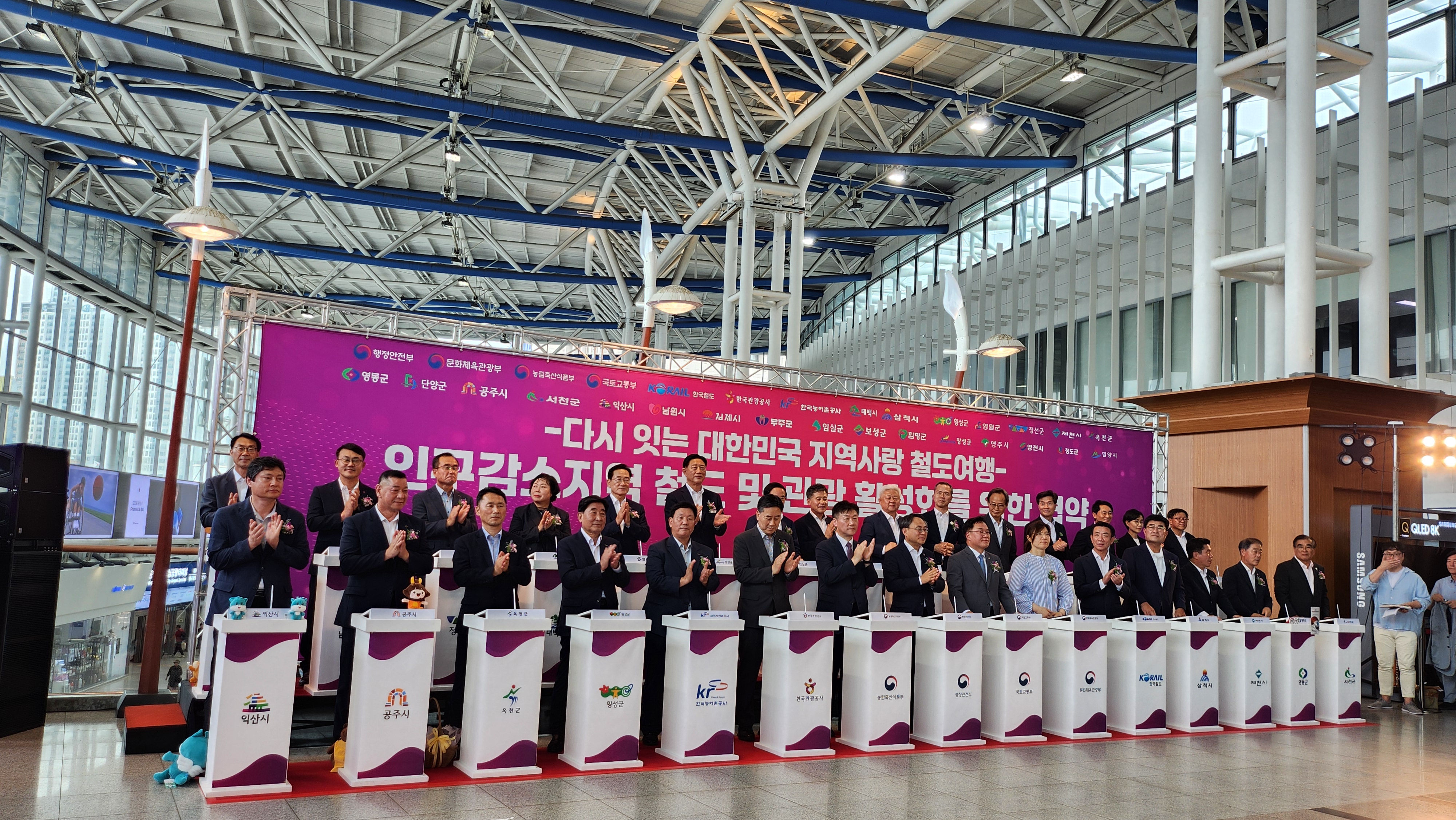 이번 협약식은 ‘인구감소지역 철도 및 관광 활성화를 위해 국토교통부 제2차관, 행정안전부 차관, 문화체육관광부 제2차관, 한국철도공사 사장, 한국관광공사 사장 직무대행, 이병호 한국농어촌공사 사장 및 남원을 비롯한 23개지자체* 시장·군수 등 관계자 100여명이 참석한 가운데 진행됐다