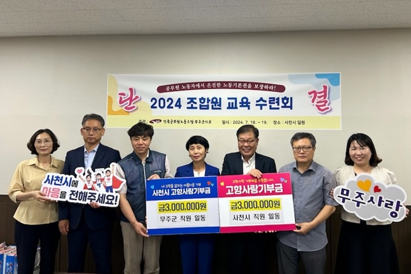 무주군청 자치행정과 임채영 과장은 “상반기 조합원 교육을 경남 사천시에서 진행하게 되면서 고향사랑기부 활성화에도 뜻을 모으게 됐다”라며 “상호기부가 무주와 사천시의 관계를 돈독하게 하고 고향사랑기부 관련 시책과 성공 사례 공유의 계기도 돼 지역 상생의 물꼬가 될 것으로 기대를 한다”라고 전했다.