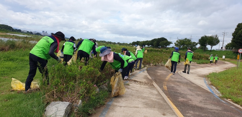 [완주=뉴전북] 완주군 봉동읍 제6기 주민자치위원회 20여 명이 만경강변 환경정화 활동에 나섰다.