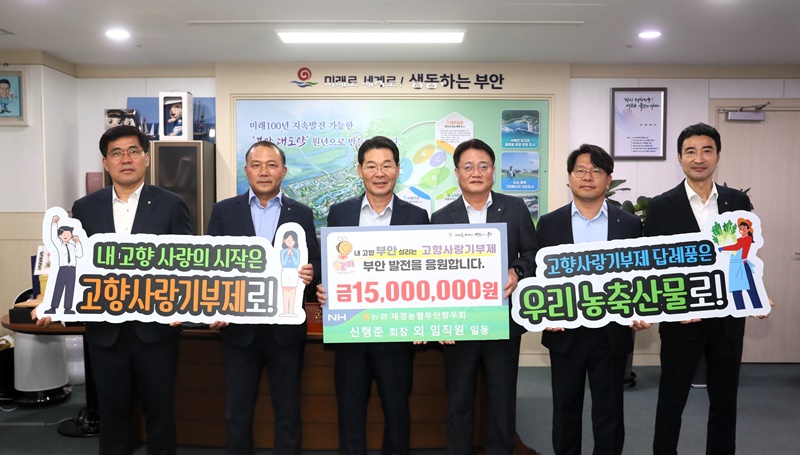 부안군청에서 진행된 기부식에는 NH농협은행 정보보호부문 부행장 신형춘 회장을 비롯한 김영일 NH농협중앙회 전북본부장, 이정환 NH농협은행 전북본부장, 조상완 NH농협중앙회 부안군지부장 등이 참여했다.
