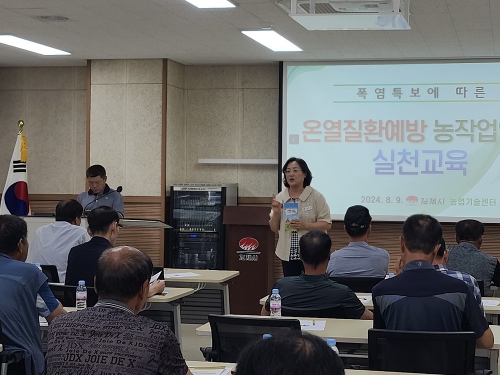 전금미 과장은 지난 9일 농촌지도자김제시연합회 이사들을 대상으로고령 농업인 안전관리를 위해 무더운 시간대(12~17작업 중단·나홀로 작업 금지 등 폭염 시 행동요령과온열질환 예방 3대 수칙(·그늘·휴식)등 필수 준수사항 교육을 진행했다.