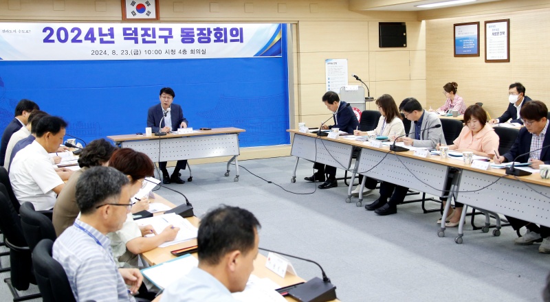 우범기 시장은 23일 시청 4층 회의실에서 덕진구 16개 동 주민센터 동장들을 대상으로 시정 주요 현안 사업에 대해 설명하고 각 동별 주요 사업을 청취하는 동장 회의를 가졌다.