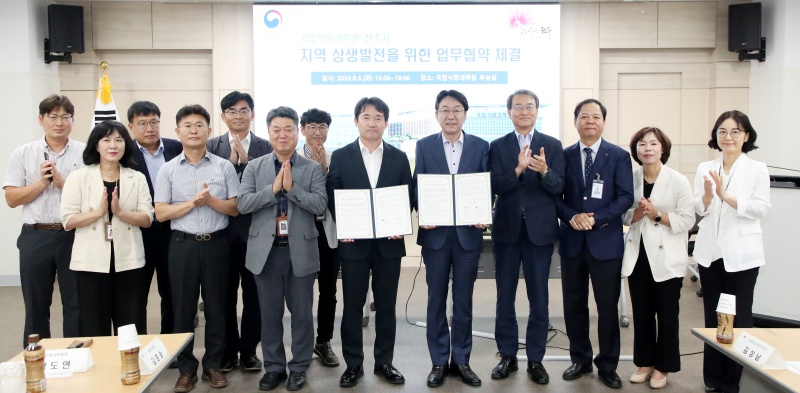 시와 국립식량과학원은 3일 국립식량과학원 3층 대회의실에서 우범기 전주시장과 곽도연 국립식량과학원장, 김상남 (재)전주농생명소재연구원장 등 양 기관 관계자들이 참석한 가운데 지역 상생발전을 도모하기 위한 업무협약을 체결했다.