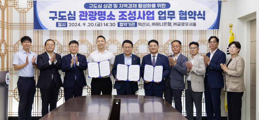 이날 협약식에는 정헌율 익산시장과 양동원 하나은행 호남영업그룹 부행장, 윤성혁 글로우서울 대표이사가 참석했다. 협약을 통해 각 기관은 사업 추진을 위한 협력 관계를 구축하고, 구도심 관광 활성화 도모와 시설 운영 등에 공동 협력하기로 했다.