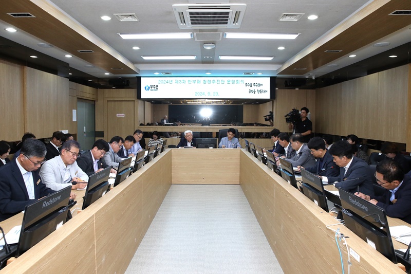[무주=뉴전북] 부패 취약 분야 개선과 청렴한 조직 분위기를 만들기 위해 지난 8월부터 ‘반부패 청렴추진단’을 발족 · 운영해 오고 있는 무주군이 23일, 무주군청 재난상황실에서 제3차 반부패 청렴추진단 운영회의를 개최했다.
