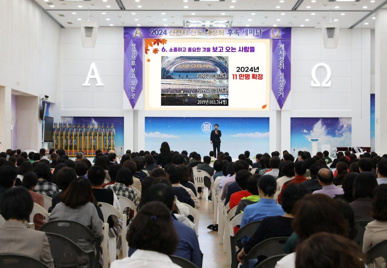 지난 13일 전북특별자치도 전주시에서 열린 ‘신천지 전주 전도 대성회’에 목회자 250여 명을 비롯해 1만 6000여 명이 참석하는 등 화제가 돼 이에 대한 앙코르 요청으로 군산지역에도 전도 대성회 후속세미나 ‘계시 성취 실상 증거’가 19일 열렸다.