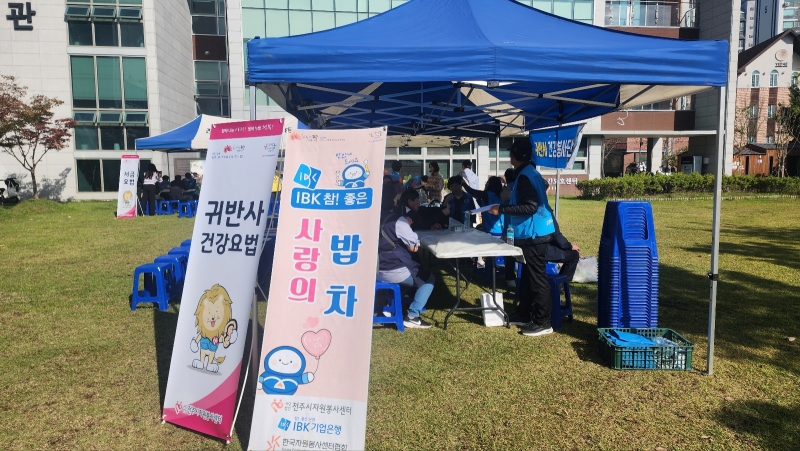 [전주=뉴전북] 사단법인 전주시자원봉사센터(이사장 최이천)는 31일 꽃밭정이노인복지관(관장 전석복)에서 지역사회 노인들을 대상으로 건강하고 따뜻한 마음을 나누는 ‘IBK 참! 좋은 사랑의 밥차’ 무료 급식 활동을 전개했다.