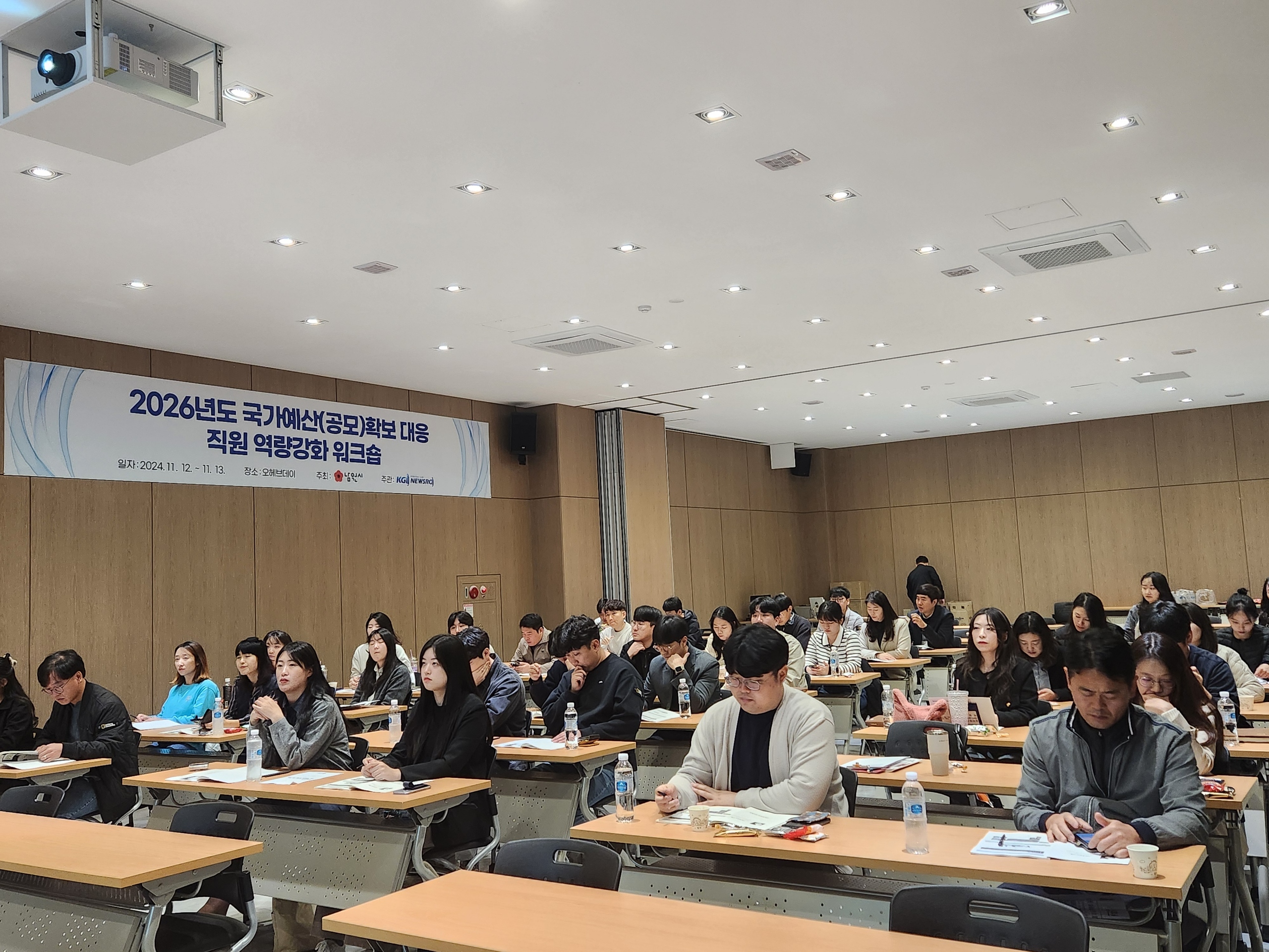 이번 워크숍은 정책환경 변화의 이해, 국가재정과 지방재정 개념과 이해, 국가예산(공모)사업 대응 전략 등의 주제로 진행되었으며, 특히 2025년 정부 예산안 분석을 통한 신규사업 발굴에 대한 내용을 깊이 있게 다지며 향후 국가예산 확보에 효과적으로 대응할 수 있는 역량을 강화하는 데 중점을 두었다.