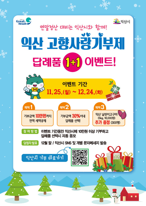 익산시 "고향사랑기부제 연말 이벤트 놓치지 마세요"