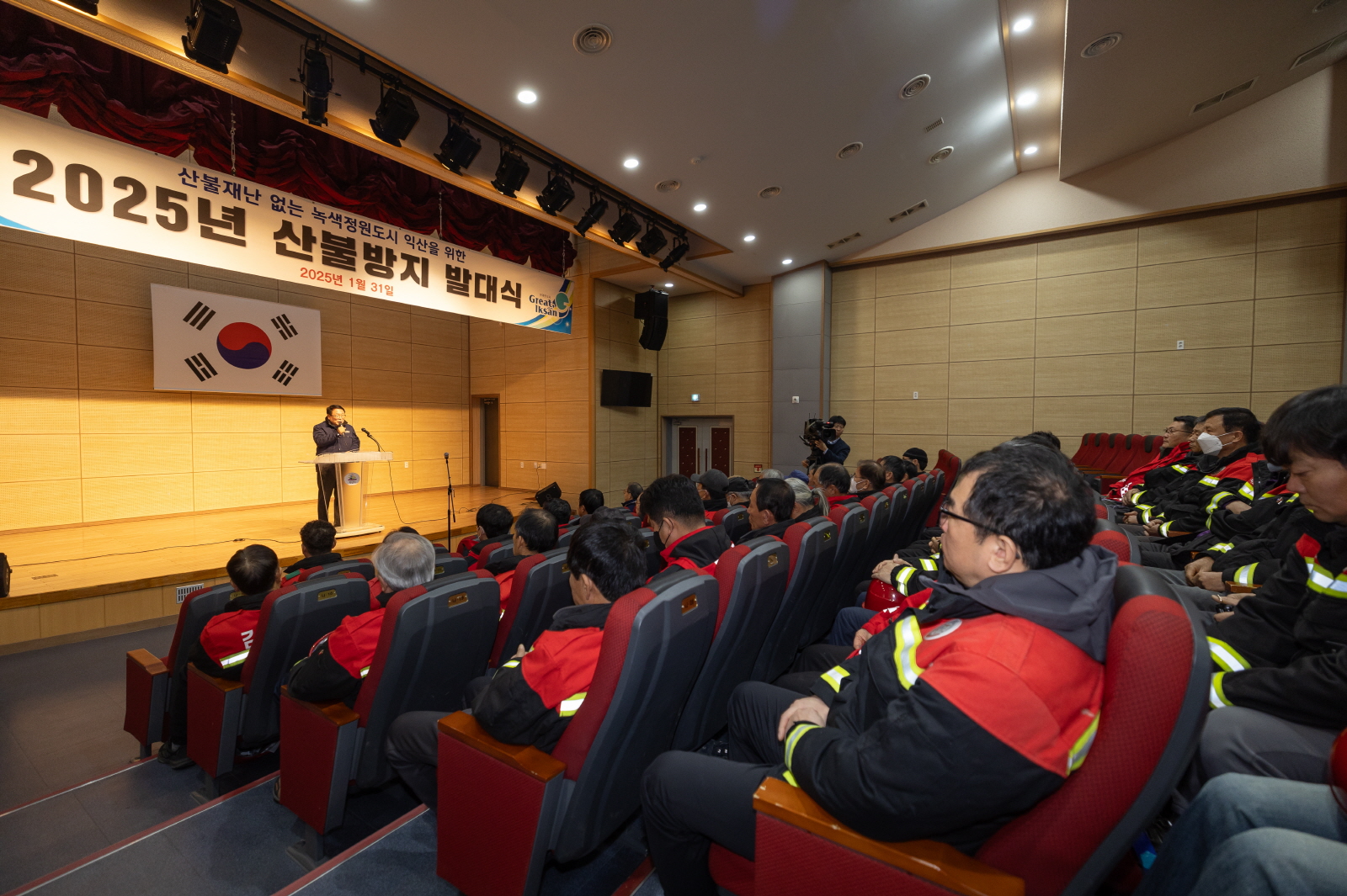 익산시는 31일 농업인교육관에서 '산불방지 발대식'을 개최하고 산불감시원과 산불전문예방진화대 위촉식을 진행했다.