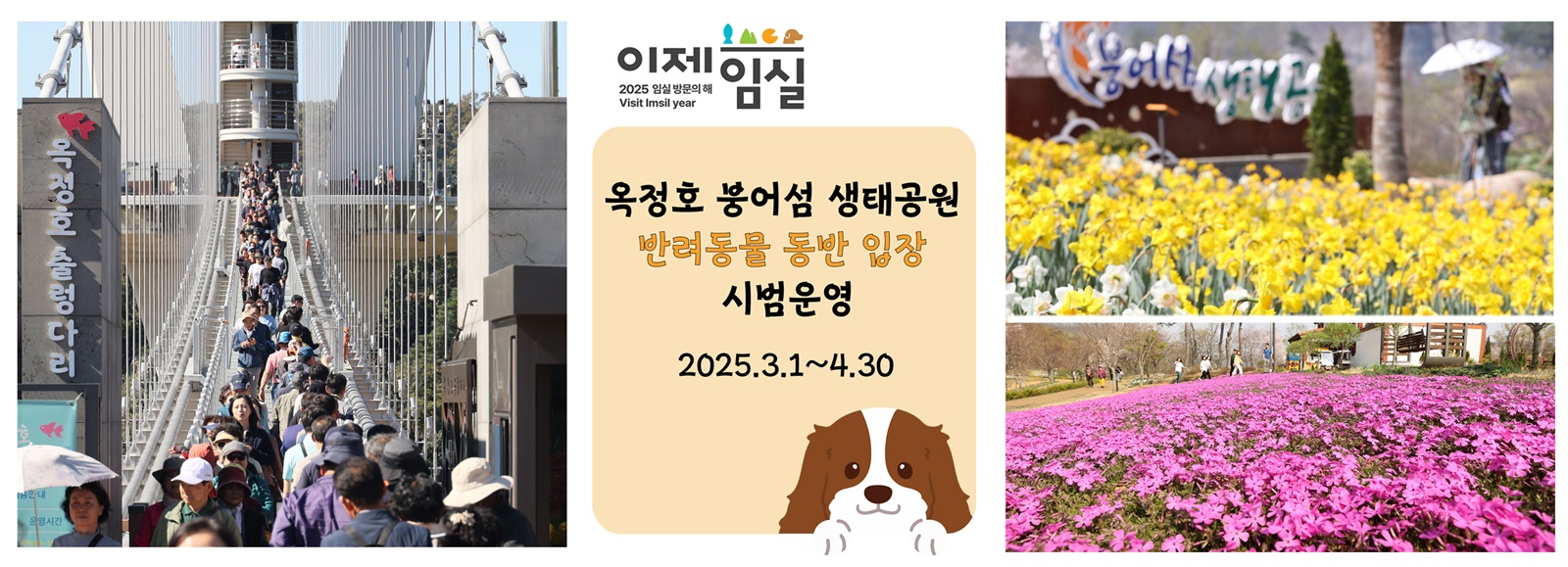 이번 시범 사업은 1500만 반려인 시대를 맞아 늘어나는 반려동물 문화에 부응할 수 있도록 임실군이 가장 핫한 관광지로 많은 사랑을 받고 있는 옥정호 붕어섬 생태공원을 처음으로 반려동물에 개방하는 것이다.
