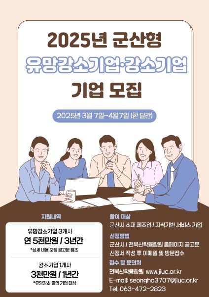 [군산=뉴전북] 군산시는 시민이 함께하는 자립도시 군산 경제를 선도할 ‘군산형 유망 강소기업ˑ 강소기업’을 신규 모집한다.