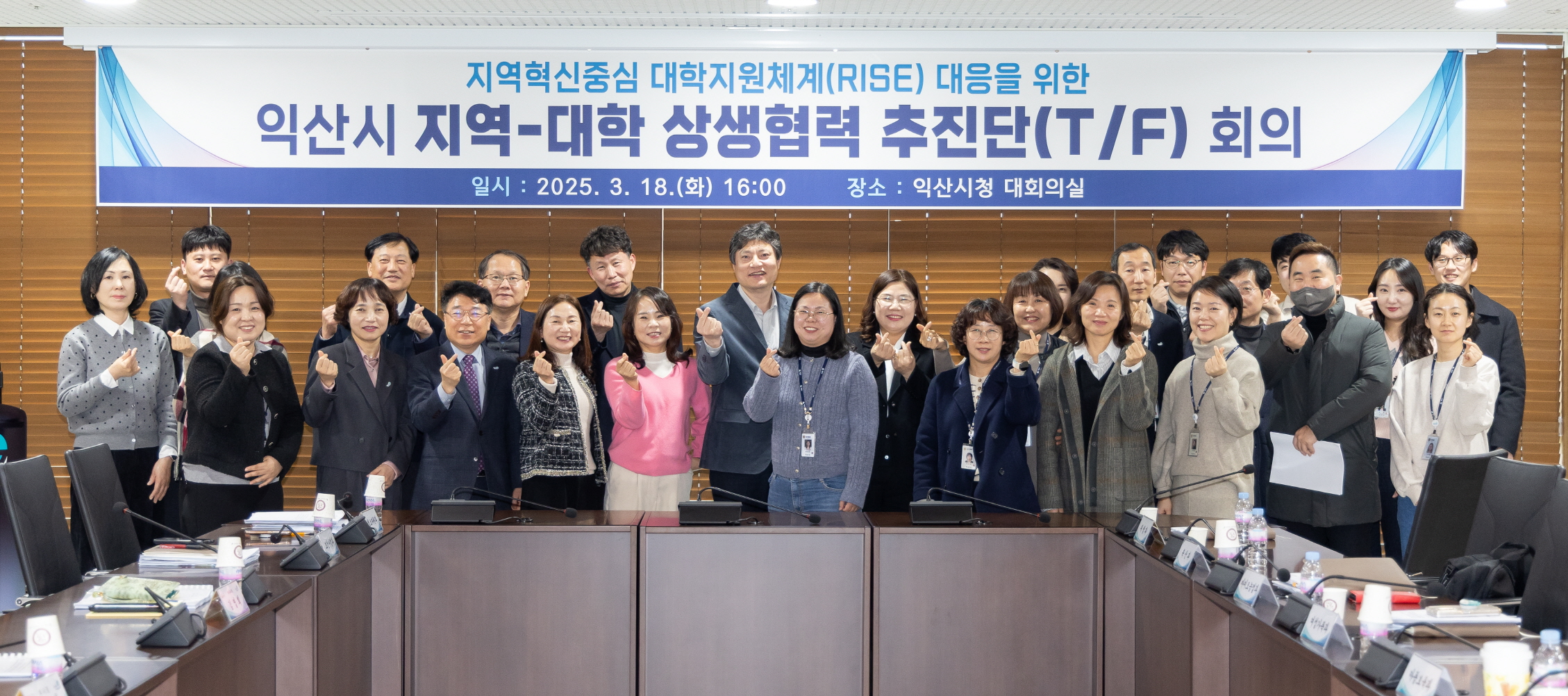 이날 회의는 강영석 부시장을 비롯해 김영희 복지교육국장 등 관련 부서장 20여 명이 참석했으며 △2025년 전북 라이즈 사업 설명 △익산시-대학 라이즈 협력 추진 경과 보고 △동행 협력 지역발전 과제 등 협력 사업을 논의했다.