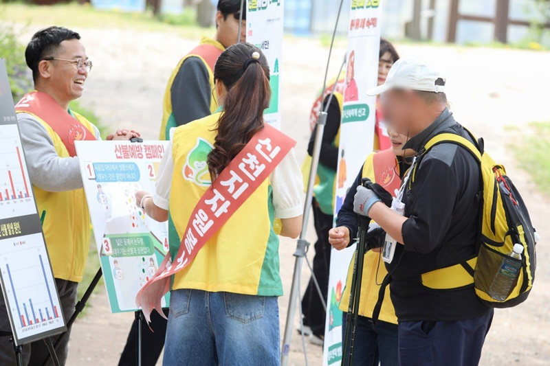 봉사자들은 이날 청암산을 찾은 등산객에게 2025년 산불 피해 사진을 통해 경각심을 일깨웠다. 또 산불 예방 수칙, 산불 발생 시 행동 요령 등을 알리고 이와 같은 내용이 담긴 라벨 생수와 산불 예방 리본을 나눠주며 캠페인을 펼쳤다.