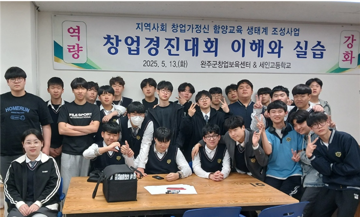 [교육-뉴전북] 완주군 창업보육센터가 지역사회 창업가정신 함양교육 생태계 조성사업 중점학교인 세인고등학교와 협력해 창업 능력 향상 프로그램을 진행한다.