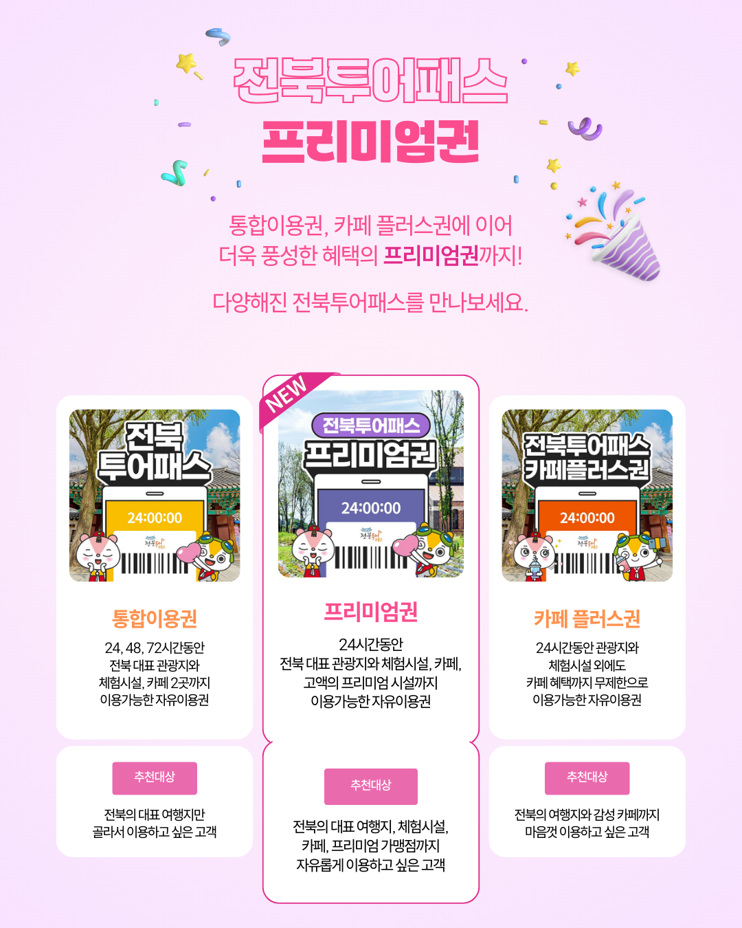 프리미엄권은 기존 투어패스 상품과 달리 자유롭게 이용할 수 있는 전북 주요 관광지 및 카페 98개소 외에도 고가의 체험형 관광 콘텐츠 9개소를 추가로 포함해 다양한 체험 기회를 제공한다. 상품 가격은 22,900원으로 관광지 입장과 체험 비용을 개별 결제하는 것보다 경제적이며 다양한 전북 여행을 즐길 수 있는 점에서 호응을 얻고 있다.