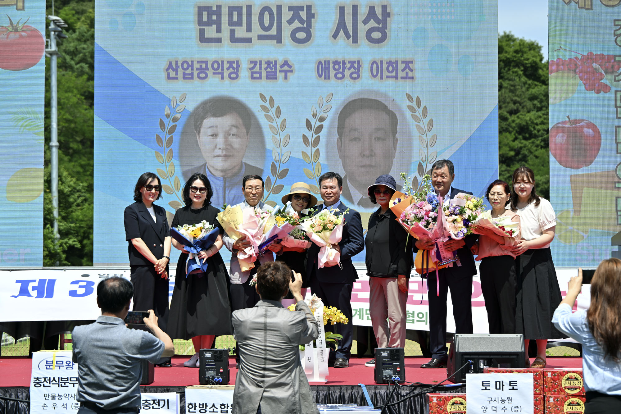 이어진 기념식에서는 고향발전과 면민의 화합에 크게 공헌한 공로를 인정받아 김철수 씨(67세, 원오동마을)가 산업공익장을, 이희조 씨(70세, 서울시)가 애향장을 수상했다.