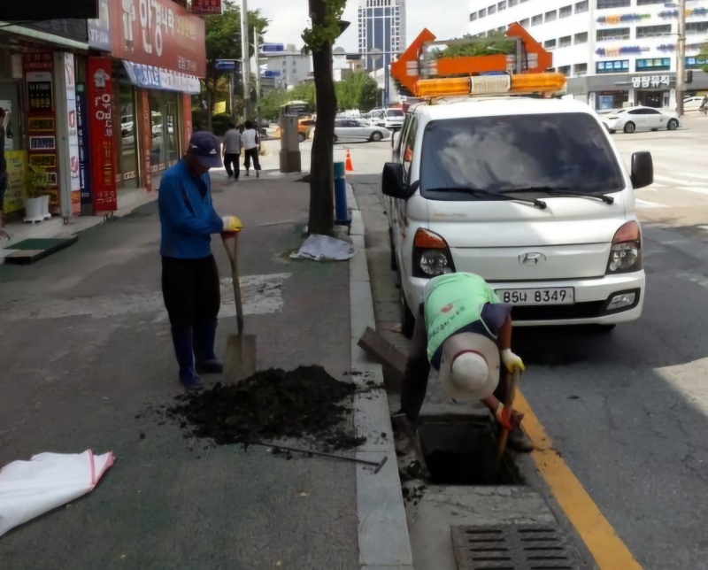 과거 침수 피해가 발생했거나, 지대가 낮은 도로의 경우 주기적인 빗물받이 청소를 통해 원활한 물길을 확보해 적극적인 예방 활동을 벌이고 있다.
