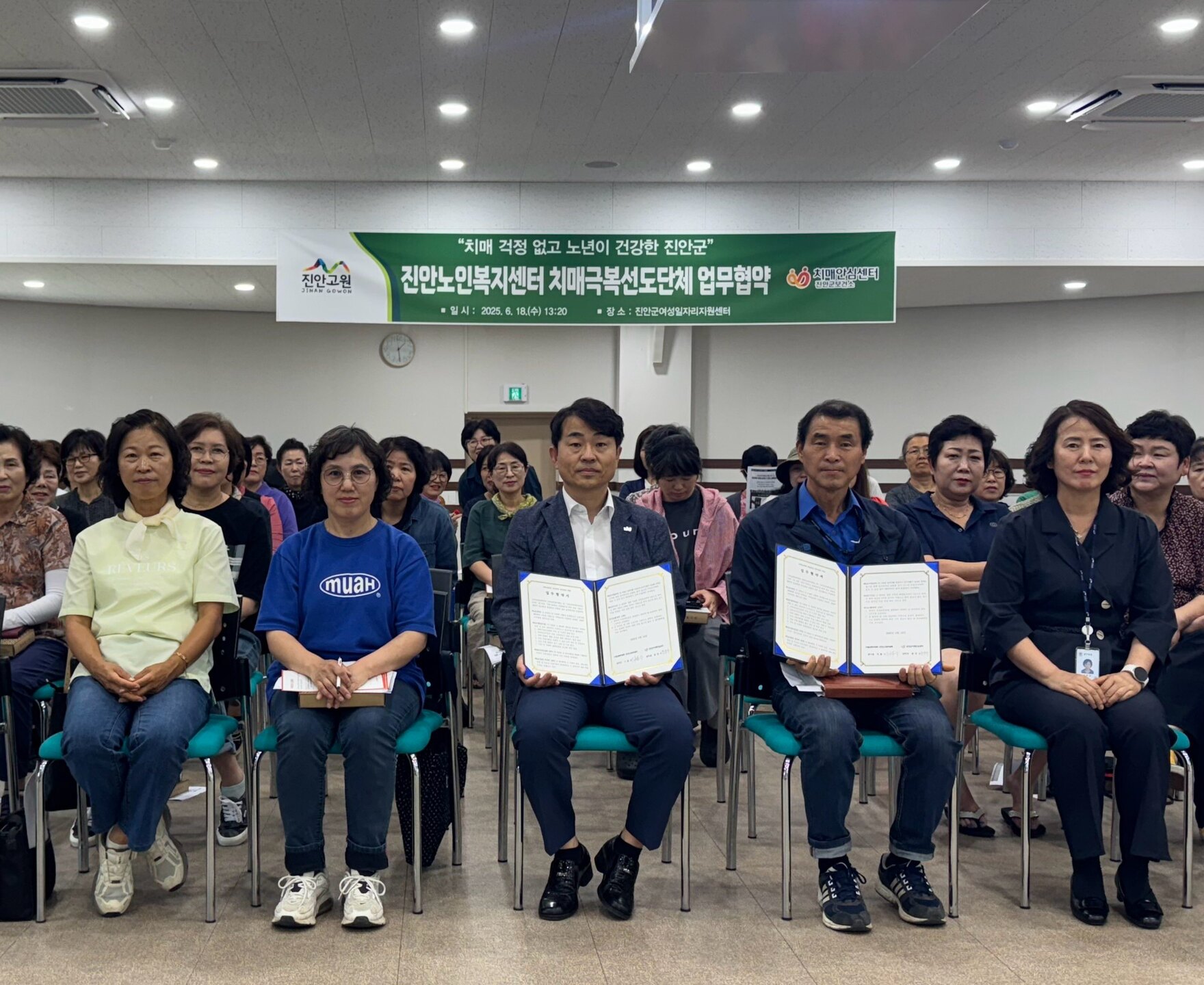 [진안=뉴전북]진안군은 18일 진안군여성일자리지원센터 강당에서 진안노인복지센터를 치매극복선도단체로 지정하고 두 기관의 원활한 업무협조 및 협력체계 구축을 위한‘치매안심사업 업무협약’을 체결했다.